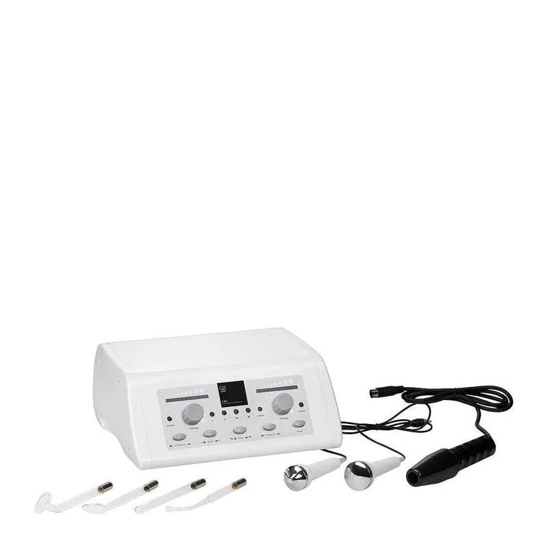 Schönheitsgerät mit 2 Funktionen: Hochfrequenz und Ultraschall. Der Ultraschall sendet zwei Wellenarten aus: kontinuierlich und gepulst – wählbar je nach Behandlung.