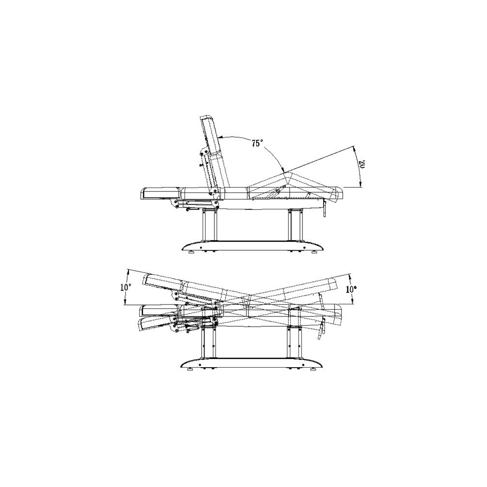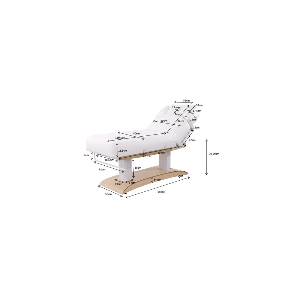 Entwickelt, um maximalen Komfort und Effizienz in der Kabine zu bieten, ermöglicht diese Liege die elektrische Einstellung von Höhe, Rückenlehne, Fußstütze und Neigung mit Antigravity-Funktion, was eine präzise Anpassung an jede Behandlung erleichtert. Sie verfügt über eine einteilige Matratze mit 3 Teilen und eine Kopfstütze mit Stopfen für die Gesichtsöffnung, die ein unabhängig einstellbares Armstützsystem beinhaltet – ideal für maximale Entspannung des Nackenbereichs bei Behandlungen in Bauchlage. Die Bewegungen werden bequem über die Handbedienung gesteuert, wodurch die tägliche Arbeit optimiert wird, da 3 konfigurierbare Positionsspeicher enthalten sind. Ihre Verarbeitung von hoher Qualität zeichnet sich durch die PU-Polsterung, den hochdichten Schaumstoff (SuperSoft-Polsterung, die für lang andauernde Behandlungen entwickelt wurde), einen praktischen integrierten Rollenhalter und eine robuste Holz-Basis aus, die Wärme und ästhetische Integration in den Raum bringt.