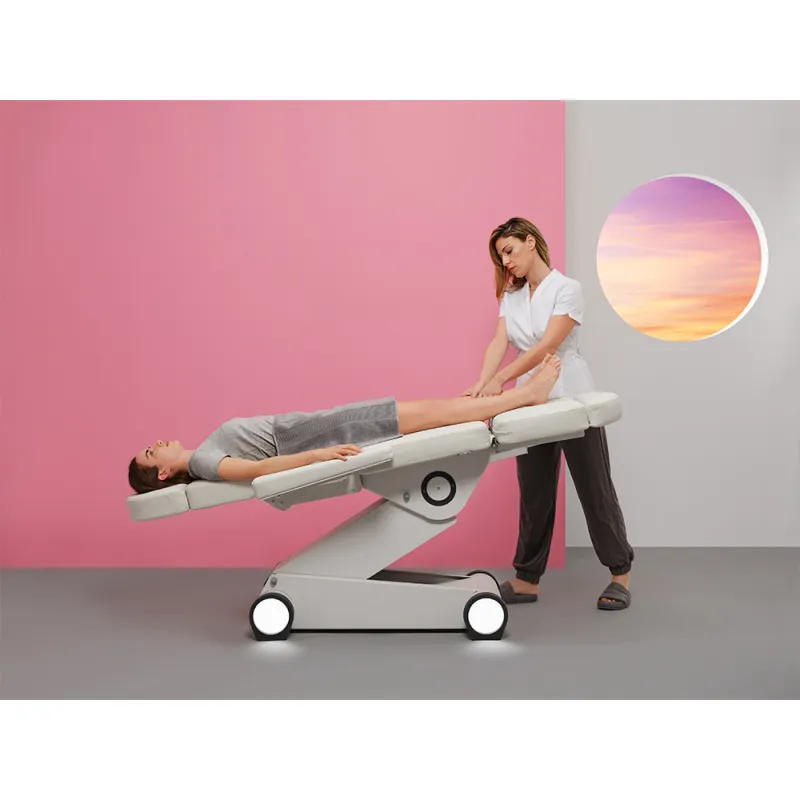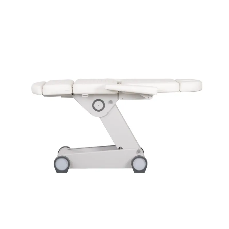Aesthetic chair with 4 motors for precise adjustments, steel structure and white polyurethane upholstery. Includes integrated LED light and combines comfort, modern design, and easy maintenance.
