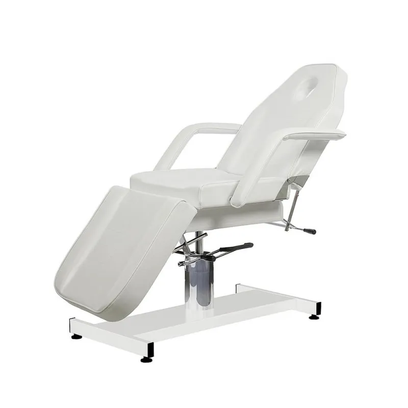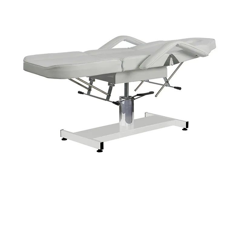 Functional 3-section bed with painted metal structure. Height adjustable via hydraulic pump. Backrest and footrest inclination are manually adjustable. Removable armrests. Black PVC upholstery, easy to clean. Integrated paper roll holder.