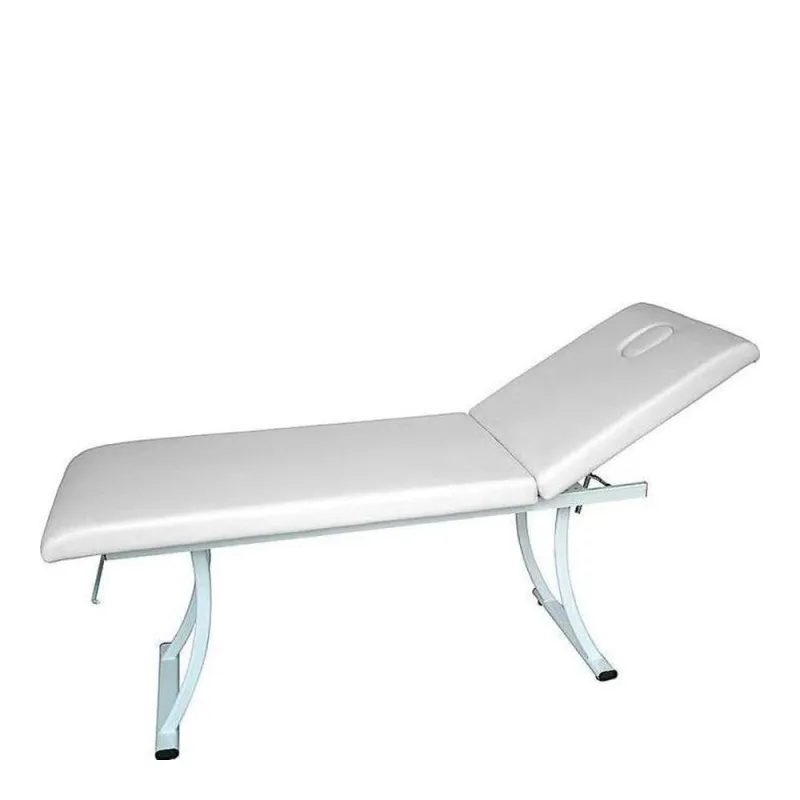Fixed multifunctional 2-section table with a robust frame. Backrest inclination manually adjustable with face hole. White PVC upholstery, easy to clean. Built-in roll holder.