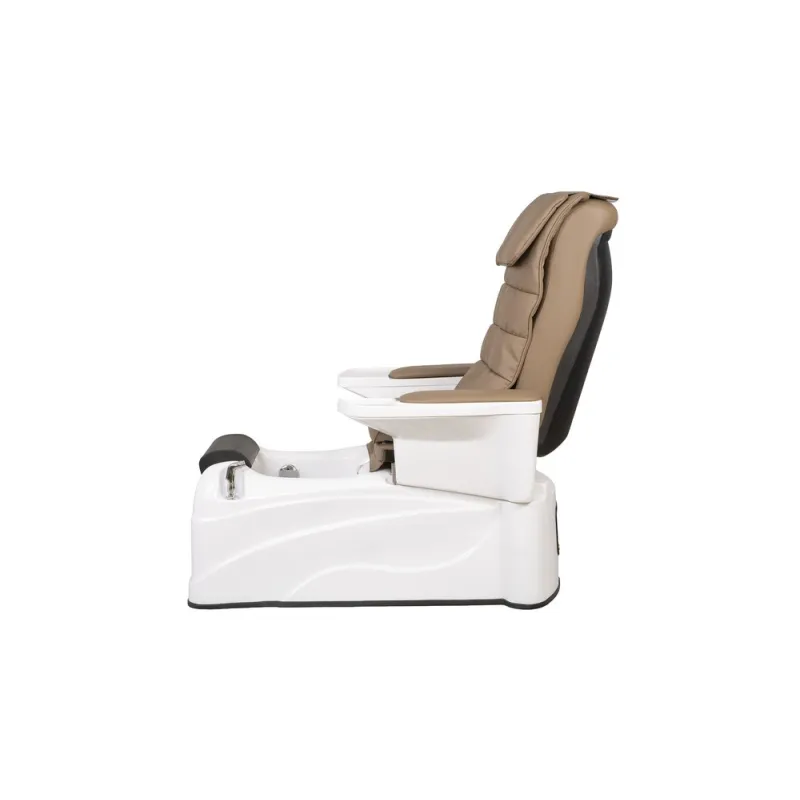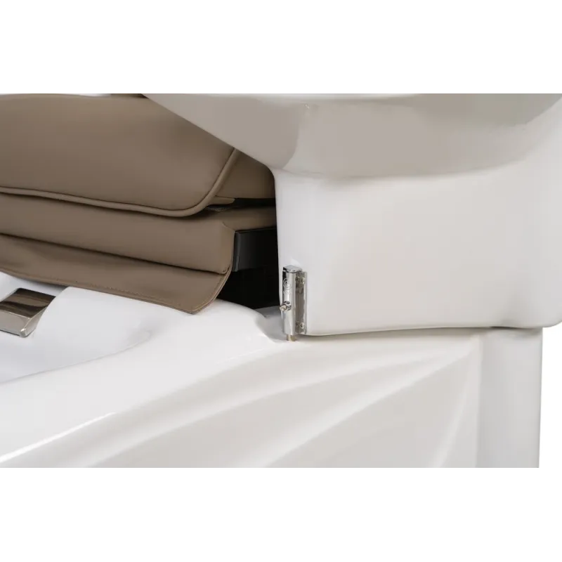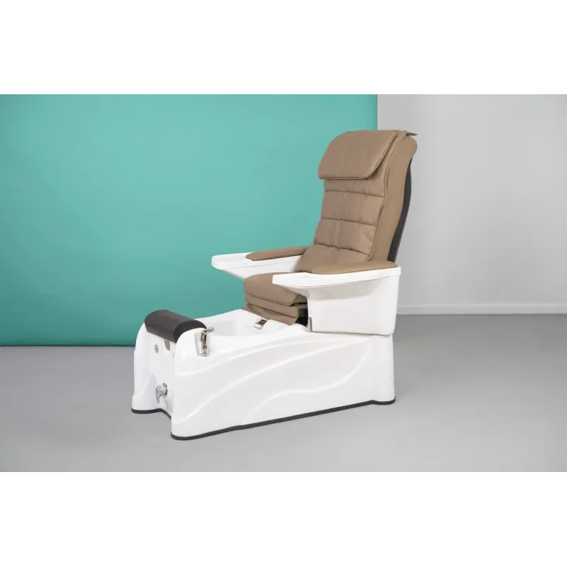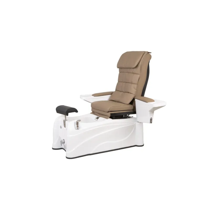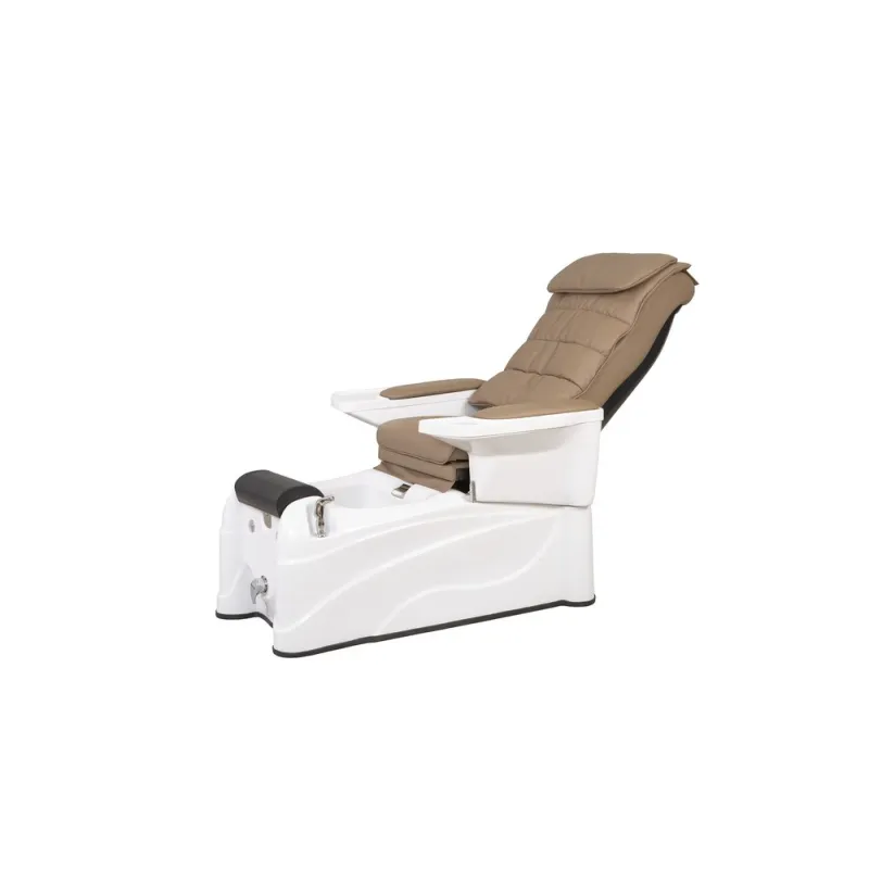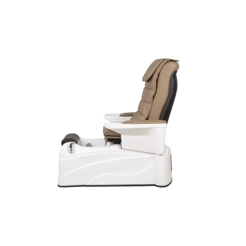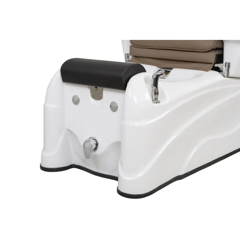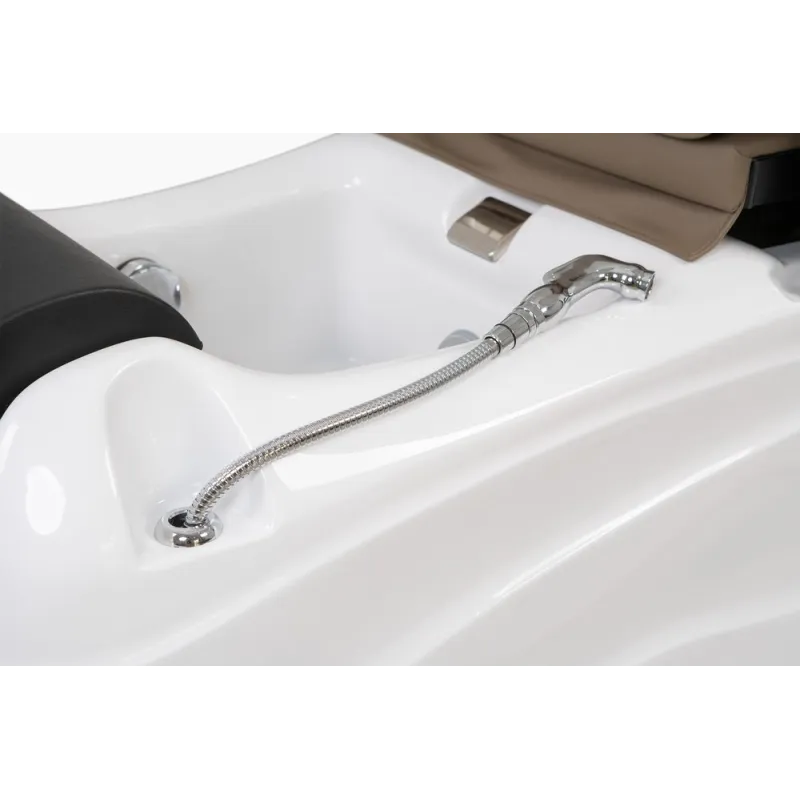 Electric spa chair with stable structure and ergonomic design, ideal for beauty centers, wellness, or pedicure. Equipped with vibration, shiatsu, and kneading massage system, adjustable via remote control. Electrically adjustable reclining backrest and sliding seat. Includes padded footrest, faucet, drain, and connections for hot and cold water. Upholstered in high-quality PU, soft and easy to clean.