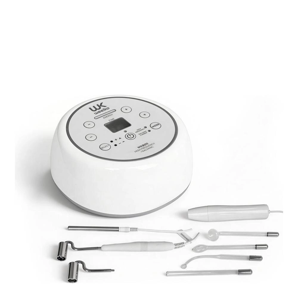 Compact digital equipment for professional use that combines 2 functions: high frequency and galvanic current. Ideal for cleansing and nourishing the skin. The continuous current helps facilitate the penetration of active ingredients in deep facial cleansing, and the high frequency contributes to accelerating blood circulation and stimulating glandular activity.