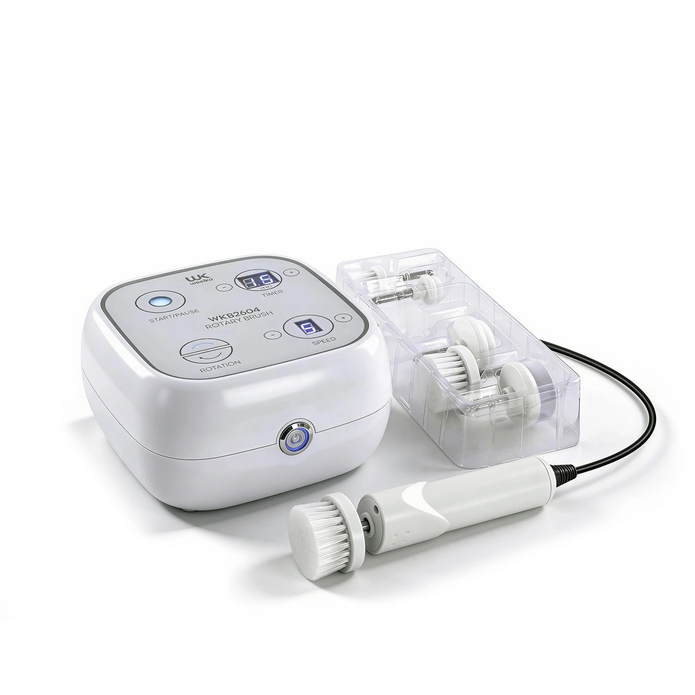 • The speed and the brush head should be chosen according to the skin type, skin sensitivity, the client's comfort, and the product being used (e.g., a coarse-grained exfoliant would require a lower speed compared to a gentler type of product).