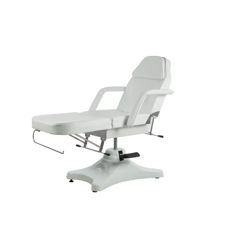 Camilla funcional de 3 cuerpos con bomba hidráulica que permite regular la altura. La inclinación del respaldo y del reposapiés se regulan manualmente. Reposabrazos extraíbles. Tapizado negro en PVC de alta calidad y fácil de limpiar.