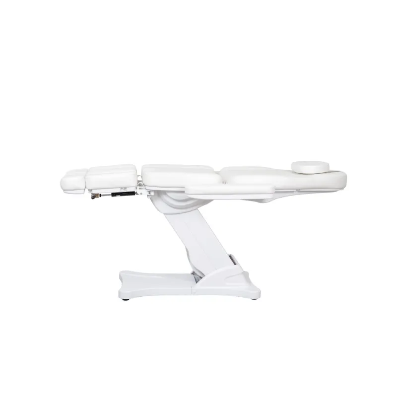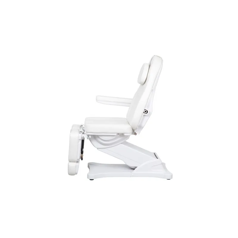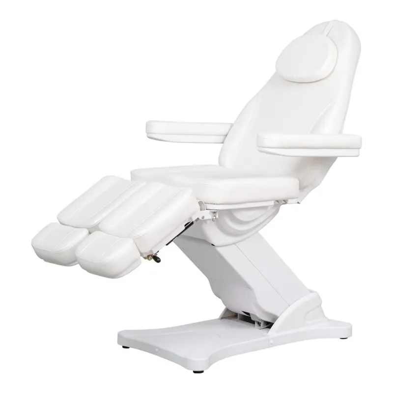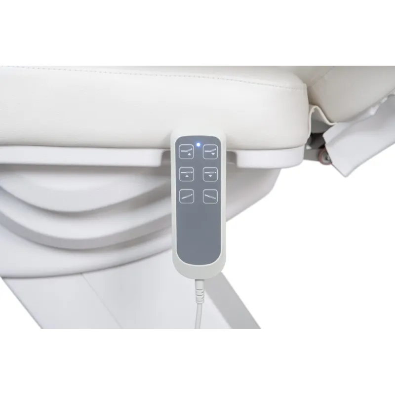 Sillón de podología de alta gama con estructura muy estable, diseñado para ofrecer confort y funcionalidad en cada tratamiento. Equipado con 3 motores que controlan la altura, la inclinación del respaldo y del asiento. Los reposapiés son ajustables en altura de forma independiente mediante pistón de gas. Cuenta con reposabrazos abatibles y reposacabezas regulable con agujero facial. Tapizado en PU de alta calidad, disponible en blanco o gris, fácil de limpiar. Opción de calefacción para mayor confort del paciente.