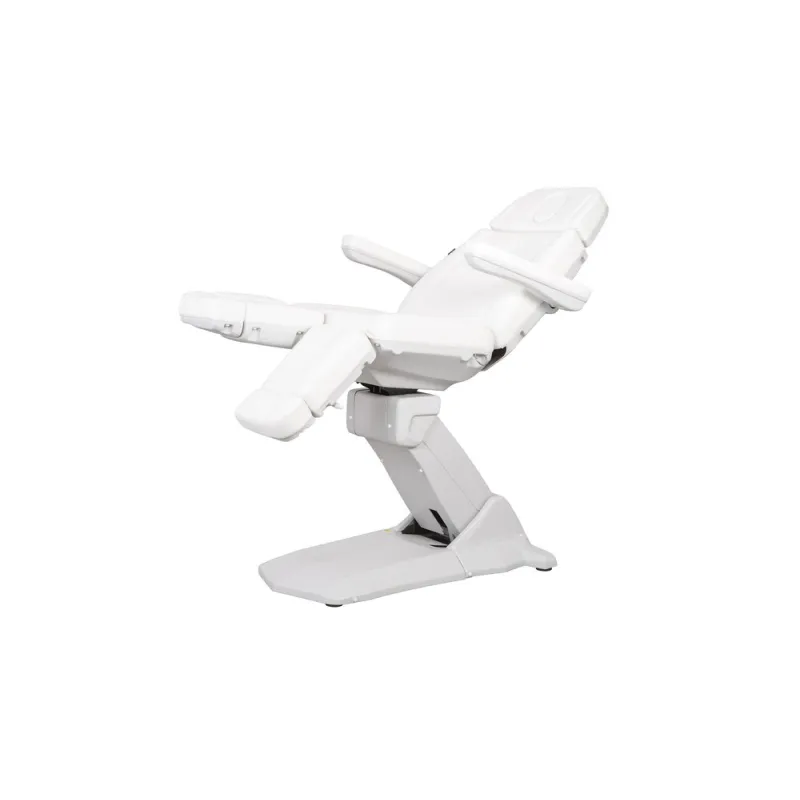 Camilla eléctrica de podología con estructura muy estable, diseñada para ofrecer la máxima funcionalidad en tratamientos médicos y estéticos. Equipada con 3 motores que permiten ajustar la altura, la inclinación del respaldo y del asiento. Incluye reposapies independientes extensibles y reclinables, así como reposabrazos giratorios. Tapizado en PU blanco e beige de alta calidad, resistente y fácil de limpiar. Ideal para clínicas, centros de podología y consultas profesionales. Opcion con calefación.