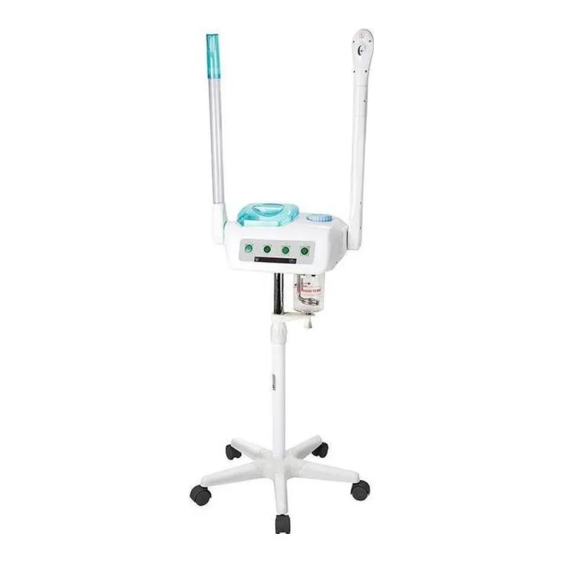 Sistema doble de brazo para tratar con frío y calor simultáneamente. Un cabezal permite tratamientos con aceites aromáticos. Diseño ligero, moderno y funcional. Altura regulable y base estable con ruedas para facilitar el desplazamiento.