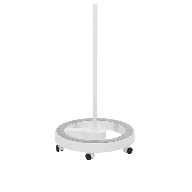 Lámpara LED de luz fría con lupa de 5 aumentos. Equipada con brazo articulado, mordaza para fijación en mesas o carritos de belleza y base compacta de 5 ruedas de máxima estabilidad. También disponible como opción con sujeción para pared.