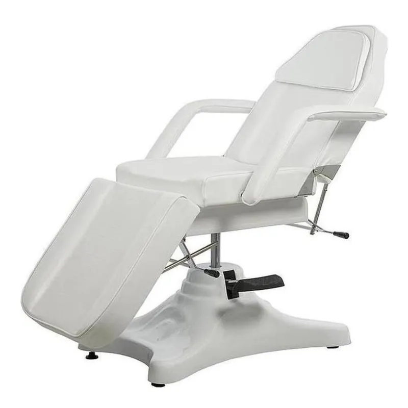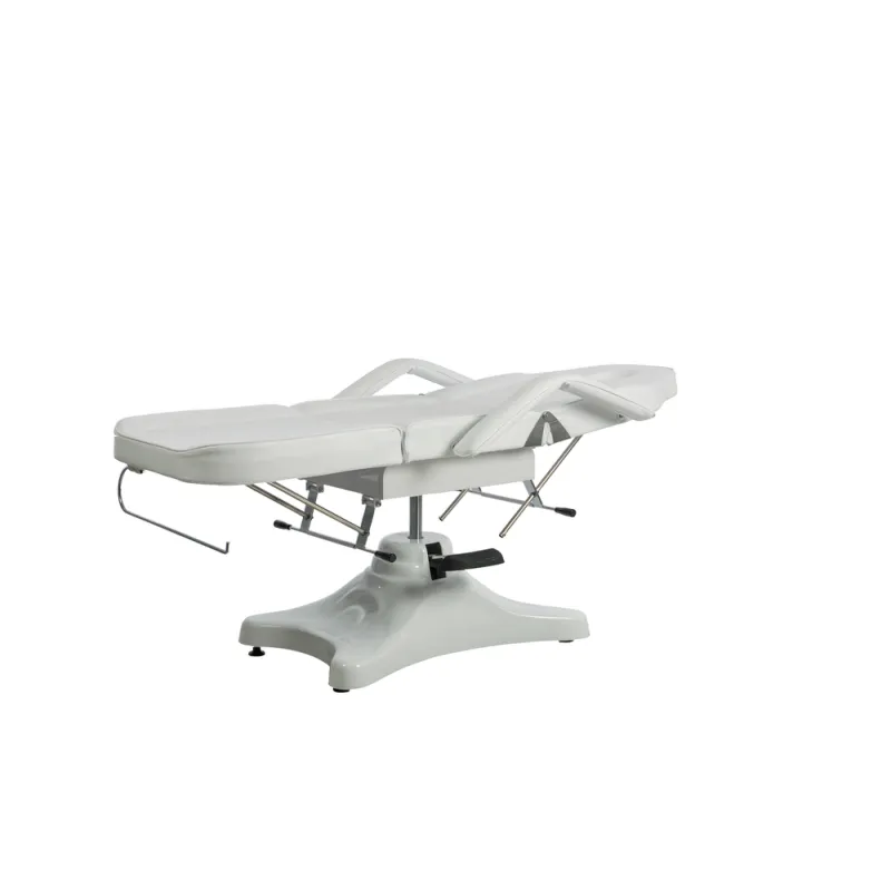 Table fonctionnelle en 3 parties avec pompe hydraulique permettant de régler la hauteur. L’inclinaison du dossier et du repose-jambes se règle manuellement. Accoudoirs amovibles. Revêtement en PVC noir de haute qualité et facile à nettoyer.