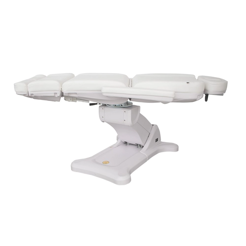 Table haut de gamme avec une structure très stable, spécialement conçue pour optimiser l’espace de travail grâce à la rotation du siège à 240°. Équipée de 3 moteurs contrôlant la hauteur, l'inclinaison du dossier et de l’assise. Repose-jambes réglable par vérin à gaz, accoudoirs rabattables. Disponible également avec 4 moteurs (modèle 2246B) permettant le réglage motorisé de la hauteur du repose-jambes. Les commandes intégrées dans le dossier, le repose-jambes et l’assise permettent un contrôle total des mouvements depuis n'importe quel point de la table. Cette version inclut la fonction RST de retour à la position initiale. Revêtement en PU de haute qualité et facile à nettoyer.