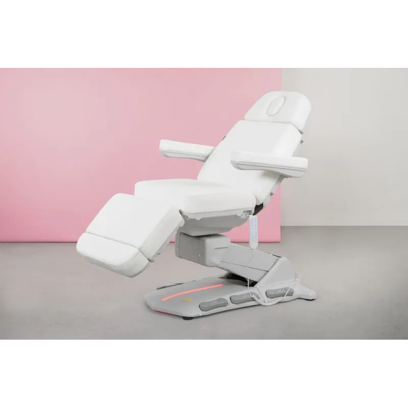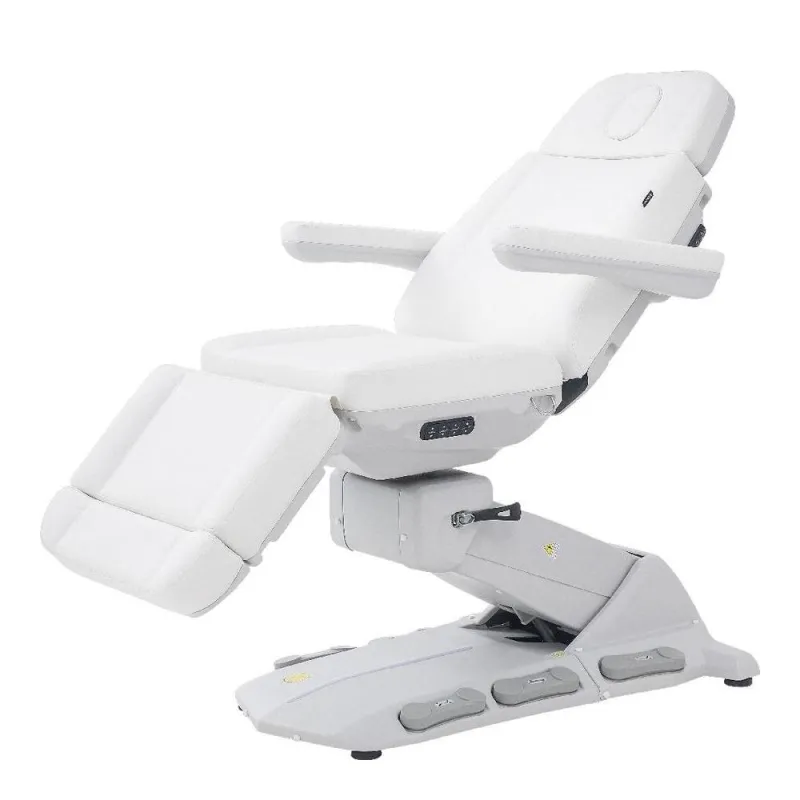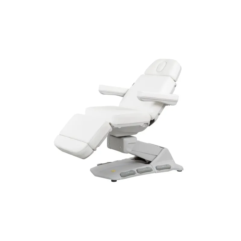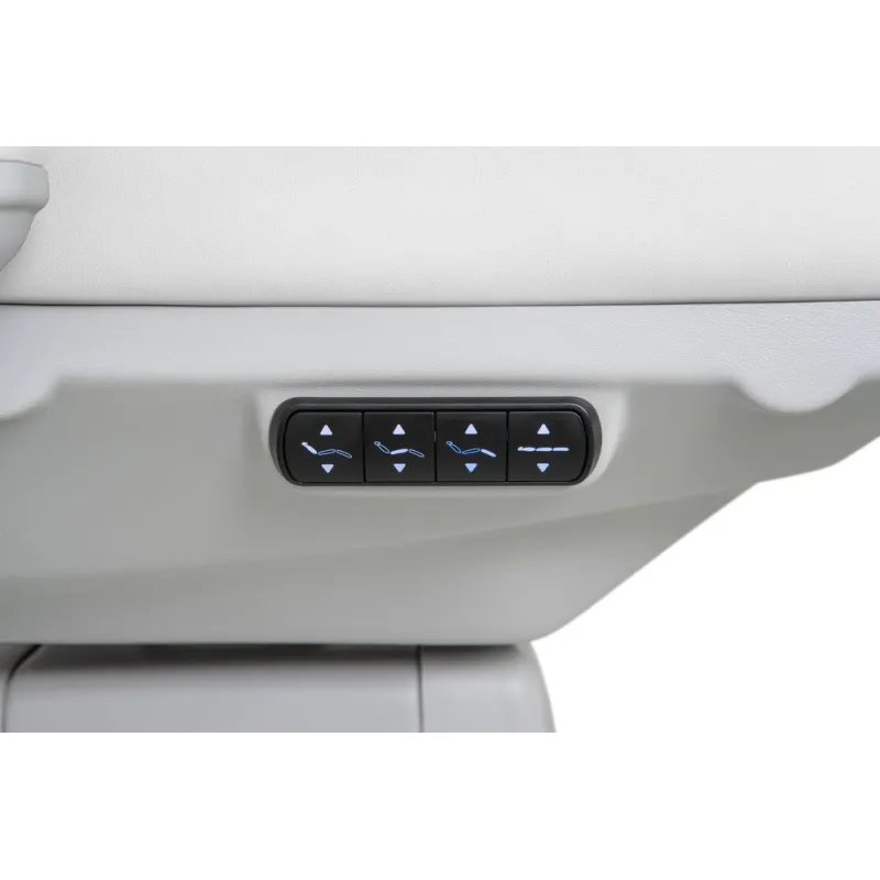 Fauteuil moderne haut de gamme avec rembourrage ultra doux pour un confort optimal et une structure très stable, conçu spécialement pour optimiser l’espace de travail grâce à la rotation du fauteuil à 90°. Équipé de 4 moteurs contrôlant la hauteur, l’inclinaison du dossier, de l’assise et du repose-pieds. Inclut 3 mémoires de position programmables et la fonction RST de retour à la position initiale. Accoudoirs rabattables. Les boutons et pédales intégrés permettent un contrôle total des mouvements depuis n’importe quel point du fauteuil. Revêtement en PU beige de haute qualité.