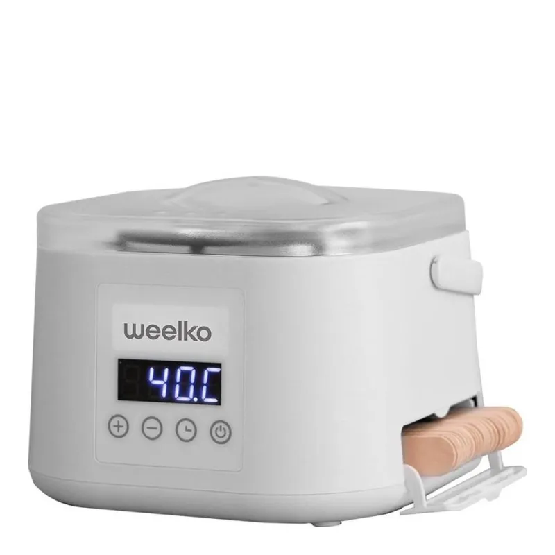 Chauffe-cire compact et moderne avec écran digital. Cuvette en aluminium amovible d’une capacité de 500 ml. Compartiment latéral pour ranger les spatules d’épilation. Plage de température de 35 à 125 °C. Finition blanche.