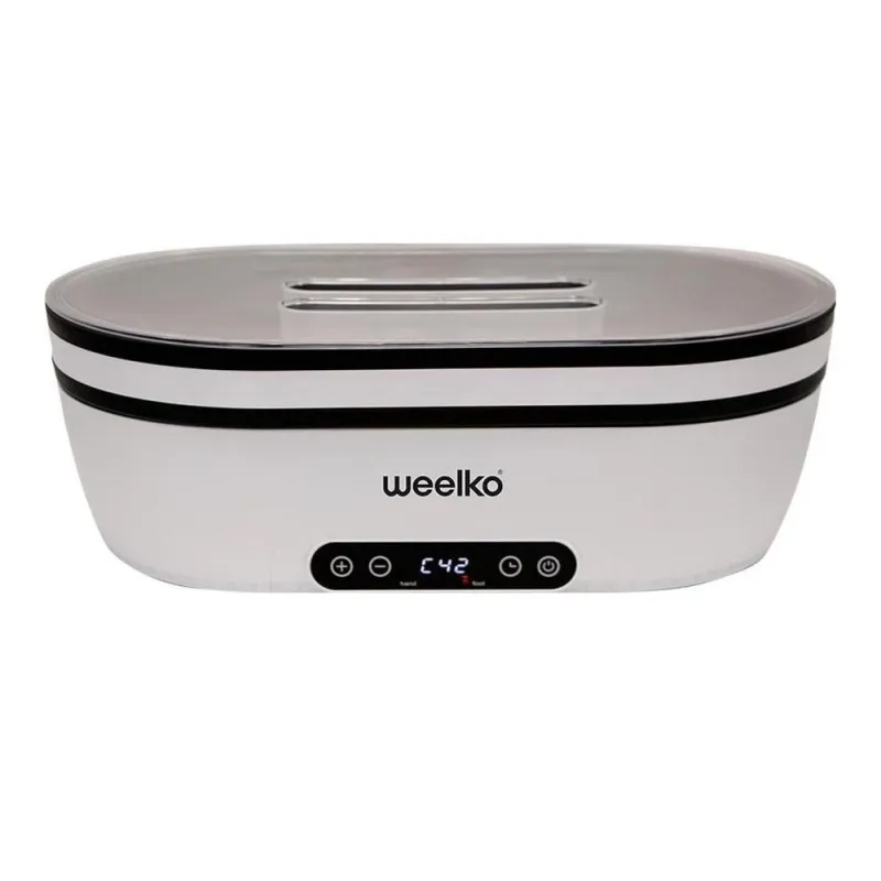 Chauffe-paraffine digital avec écran tactile et design élégant. Dispose de deux récipients : un pour les soins des mains et un autre pour les pieds. Capacité de 2000 ml ou 4500 ml selon le traitement. Bac supérieur en silicone amovible, facile à nettoyer. Grande capacité, format compact.