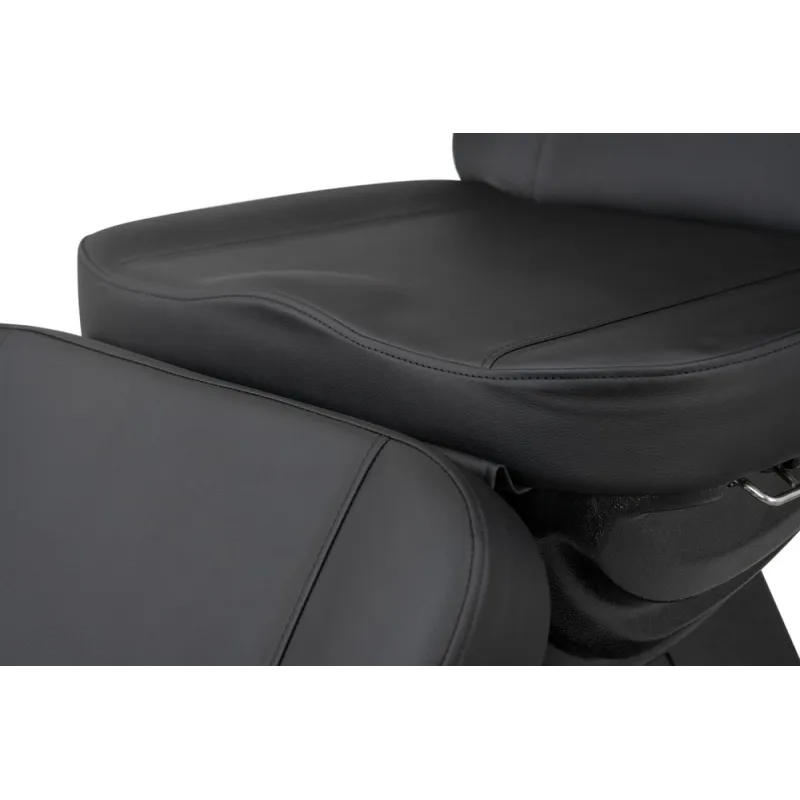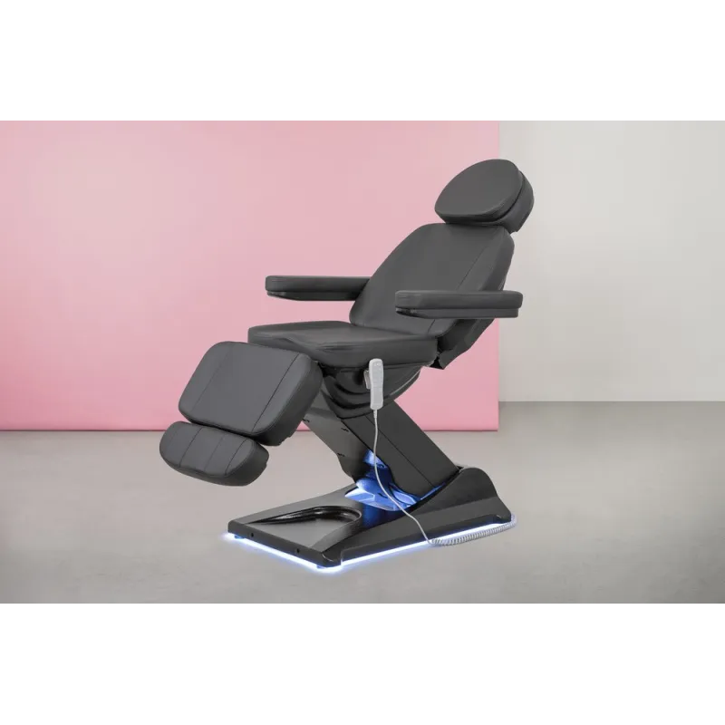 Lettino estetico di alta gamma con funzione di riscaldamento integrata e struttura extra stabile, progettato per ottimizzare al massimo lo spazio di lavoro. Dotato di 4 motori che regolano l’altezza, l’inclinazione dello schienale, della seduta e del poggiapiedi. Include posizione piatta preimpostata e ritorno automatico alla posizione iniziale. Temperatura regolabile dal telecomando. Braccioli ribaltabili e rivestimento in PU di alta qualità, resistente e facile da pulire.