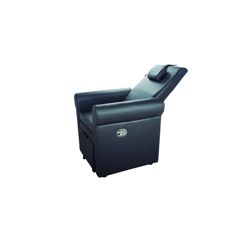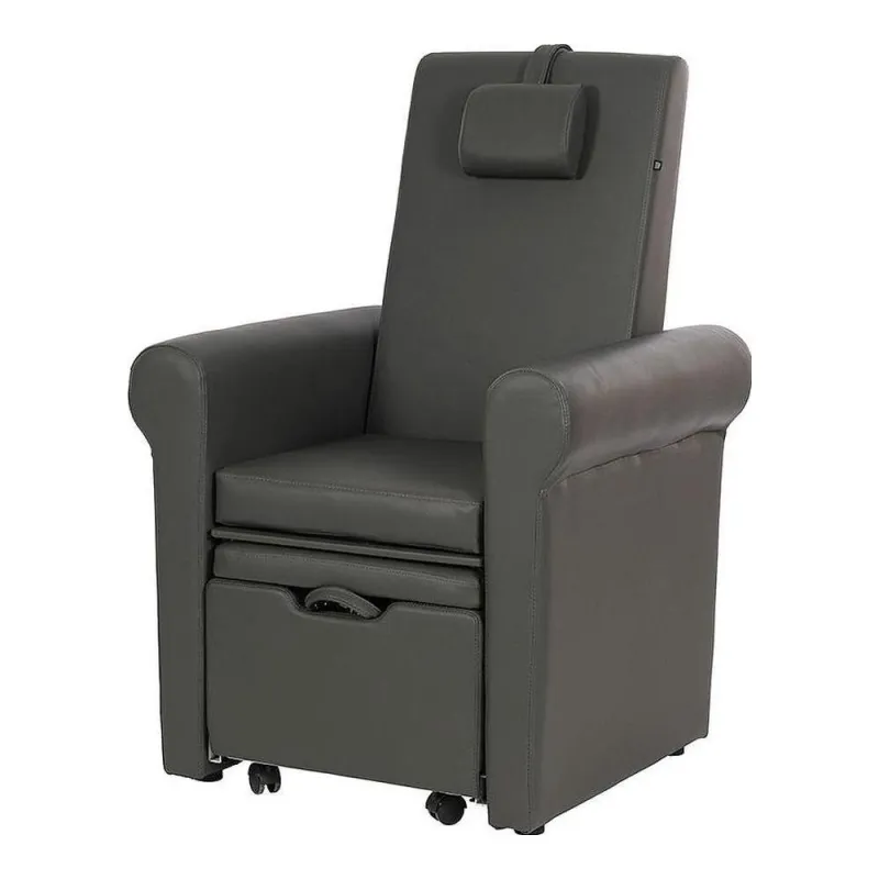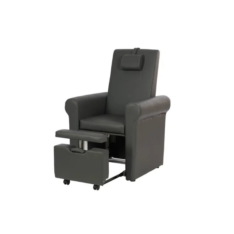 Poltrona pedicure spa dal design comodo ed elegante, con rivestimento in PU bianco di alta qualità. L’inclinazione dello schienale è regolata da un pistone a gas. Dotata di vano estraibile sotto la seduta per l’inserimento di una bacinella per pedicure. Poggiapiedi regolabile.