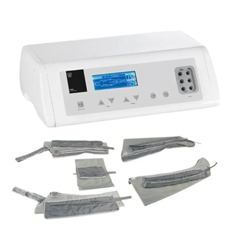 Dispositivo di pressoterapia con tuta composta da stivali, fascia addominale e bracci. Ideale per migliorare la circolazione e facilitare l’eliminazione dei grassi attivando il drenaggio linfatico.