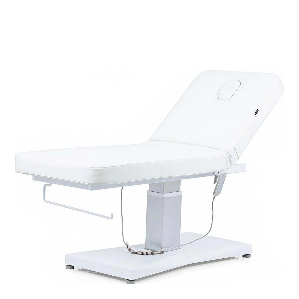 Progettata per offrire massimo comfort ed efficienza in cabina, è ideale sia per massaggi che per trattamenti facciali e corporei. Consente la regolazione elettrica dell'altezza tramite un motore rapido che ottimizza il lavoro quotidiano, oltre a disporre di una regolazione precisa dello schienale tramite pistone a gas. È dotata di un materasso continuo a 2 sezioni progettato in un unico pezzo, equipaggiato con tappo per il buco facciale.