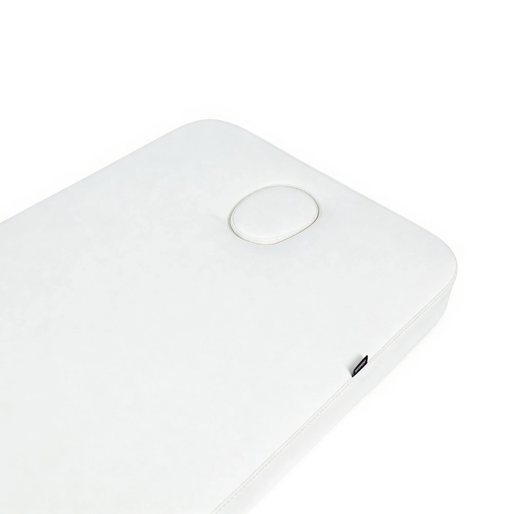 Camilla da massaggio elettrica con 1 motore, rivestita in PU colore bianco.
